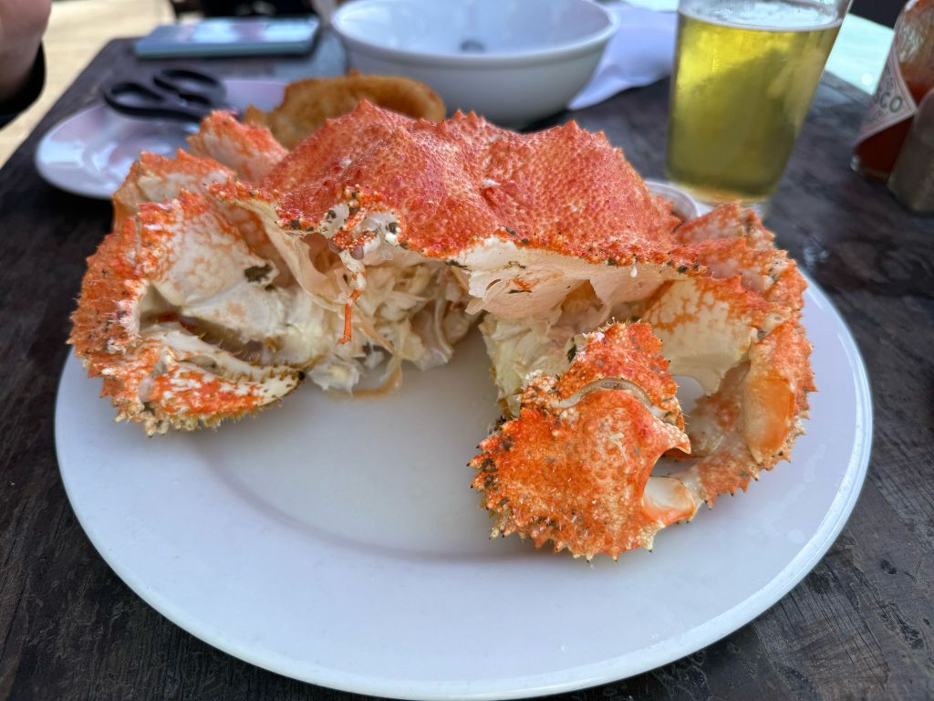 Then for the weekend we headed up the coast to Santa Barbara again, to have dinner and stay overnight with the friends we made in a wine bar on our last visit. Before meeting them for the evening, we took a walk through Downtown Santa Barbara, browsing the craft market, grabbing some frozen yogurt and eyeing up the many bars and restaurants in the area. Then we went to our home for the night which was in a beautiful spot to the west of the city. It was a very relaxed evening with our hosts, with home cooked food, beautiful red wine and flowing conversation. They even have two cats and two dogs which we spoiled with attention. Then on Sunday we had another sunny day on the beach and we went back to the seafood restaurant on the pier. This time we were brave enough to try Box Crab, served whole in its shell (having been cleaned and gutted by the kitchen) so we had to learn how to get the meat out of the claws, which was a challenge but very tasty! Finally, we made our way back along the coast to watch the sunset on Santa Monica Pier!