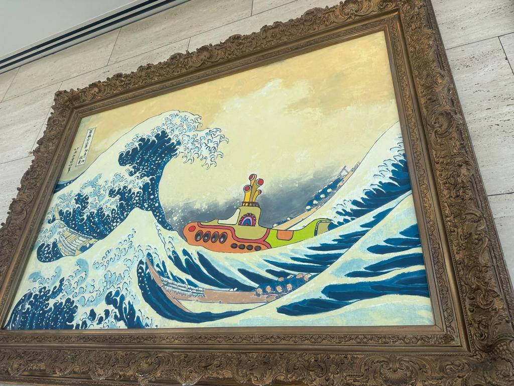 After my last post on the morning (US time) of 26th June, I headed for Beverly Hills to go to Mr Brainwash, an art gallery of pieces by the street artist Thierry Guetta who goes by the pseudonym of Mr Brainwash. He juxtaposes different styles of artwork and superimposes modern popular culture onto classic works of art, for example a series of Mona Lisas wearing sunglasses, face paint, hats etc. After a walk round the gallery, I headed next door to an ice cream parlour recommended by the Book Club crew. I sampled ‘Goose Tracks’ (raspberry/blackberry with chocolate flakes) and ‘Gooey Butter Cake’ (a cream cheese base caramel sauce and cake pieces), then walked back home through the long thin park beside Santa Monica Boulevard. In the evening I went for a lovely dinner with Chris and two of his colleagues at La Boheme, a French restaurant we went to earlier in the year which has live music in the evenings. We ate some great food, shared a couple of bottles of Sancerre and sat on the terrace as the sun set.