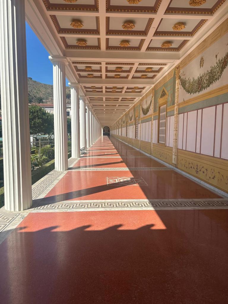 On Saturday, we picked Adam and Juliet up from their hotel and headed to Santa Monica for a walk on the beach and breakfast at Sweet Maple one last time – some of the best French toast and fried chicken I’ve had. We walked down to Venice Beach, then caught a Waymo back before heading to the Getty Villa! The Villa itself was projected during the fires in January, but there was quite a lot of damage to the grounds and gardens, so the Villa only reopened on 27th June. I was so glad we managed to squeeze in a visit before I left. It was such a peaceful place, with a view of the ocean in the distance and a huge collection of Ancient Greek, Roman and Egyptian artefacts. We spent around 3 hours exploring the Villa and gardens before going back to Santa Monica for sunset, then Chris and I left Juliet and Adam to go to a final dinner together at The Little Door – we went there for Chris’s birthday and it has a beautiful atmosphere; perfect for our last night together.